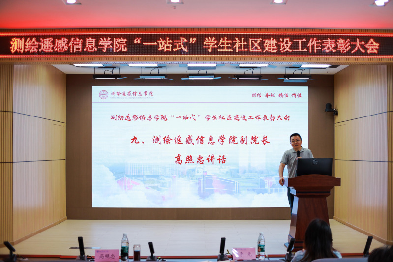 为推动学院“一站式”学生社区建设进一步走深走实,鼓励大家持续发挥先锋模范作用,5月16日上午,测绘遥感信息学院在博学楼5楼学术报告厅召开“一站式”学生社区建设工作表彰大会。测绘遥感信息学院党总支副书记李元、副院长高照忠、辅导员罗小霞参加了本次表彰大会。