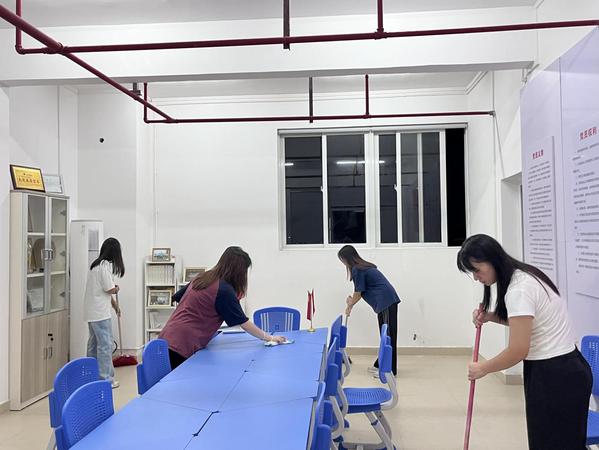本次活动主要打扫了测绘学院位于第16栋宿舍楼的班主任工作室、辅导员工作室,并在宿舍区垃圾分类场所进行垃圾分类引导投放。通过扫地、拖地、摆放桌椅、擦拭窗户、整理课室物品等,为师生营造良好、干净的校园环境。他们分工明确,互帮互助,认真清理卫生死角,同时也提高了爱护公共卫生的意识。在垃圾分类过程中,大家更清晰了解了垃圾分类的要求,并积极进行引导分类投放垃圾,加强了垃圾分类意识,展现出“我为群众办实事”的积极态度。