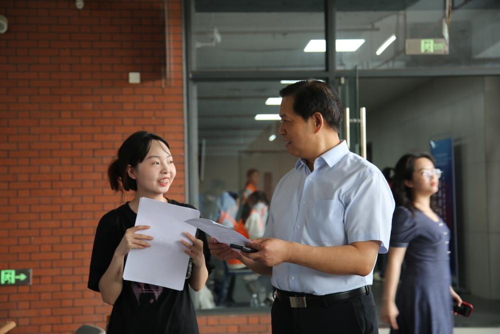 走访过程中,何汉武与速云中交流了学院应届毕业生的就业情况,并与毕业生交流,关心、关怀、关注他们的就业状况和就业心态。何汉武仔细询问了毕业生的求职意向和应聘情况,他对每一位毕业生的职业发展都给予了高度的关注。他鼓励毕业生要树立正确的就业观念,积极面对就业市场的挑战和机遇;要不断提升自己的综合素质和专业能力,以更好地适应社会的发展和变化;要勇于尝试和创新,不断追求自己的职业梦想和价值,同时也要脚踏实地,从基层做起,积累经验,不断提升自己的能力和素质。