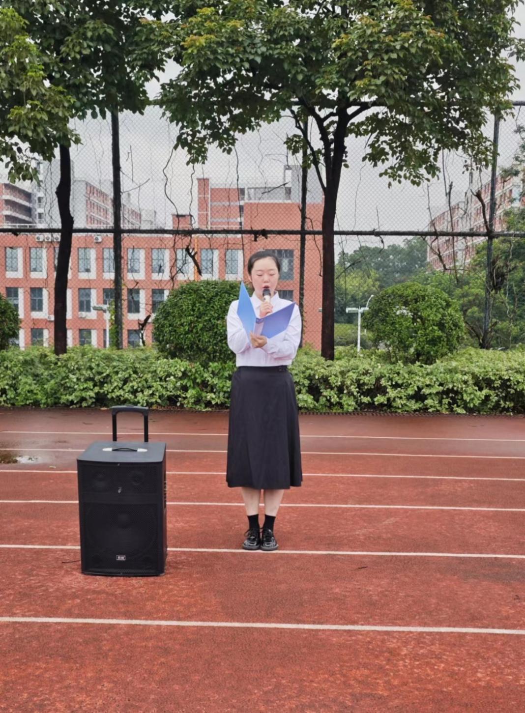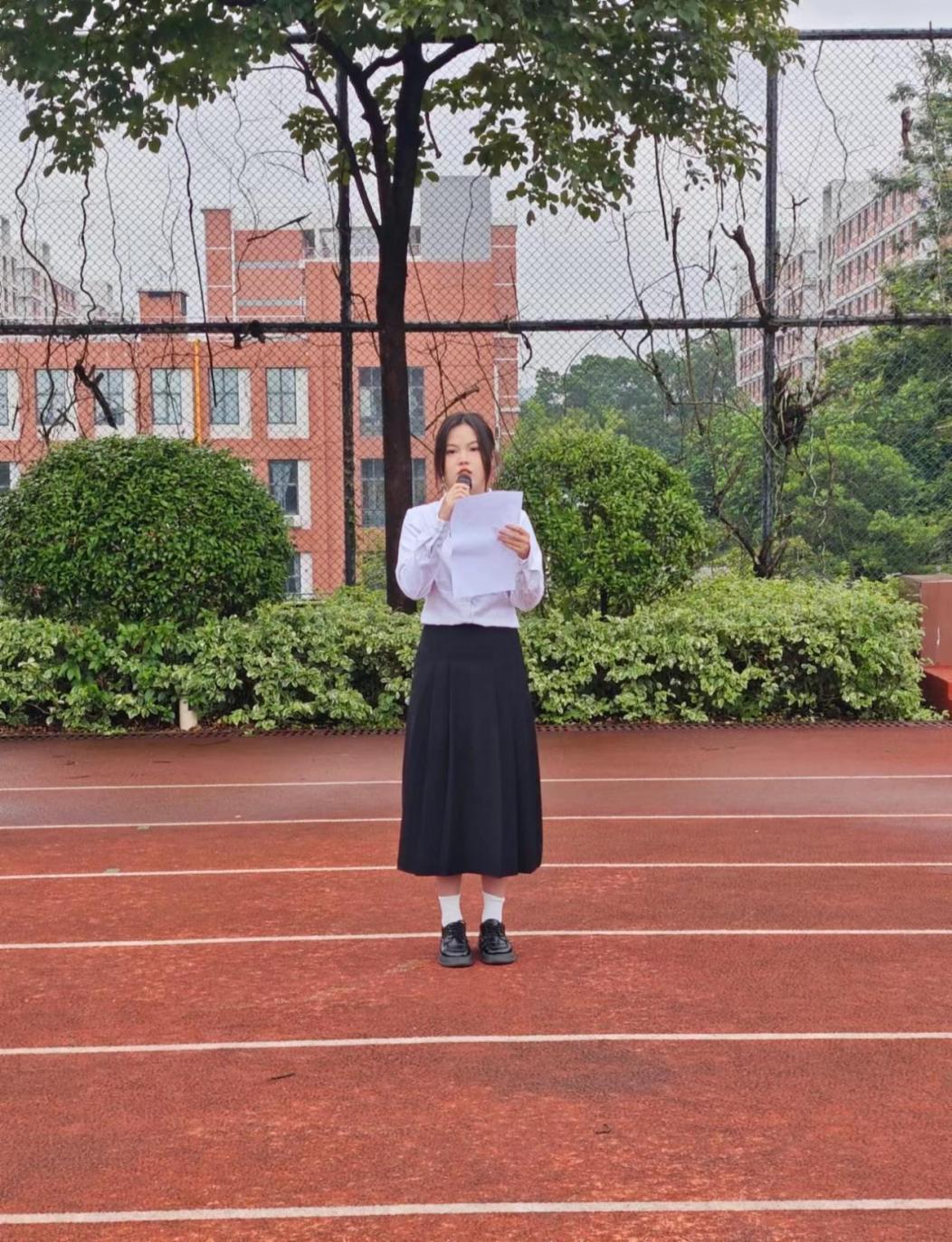 学生代表刘涵宇在国旗台下发言。她号召同学们用行动去践行自己的理想使命,坚持“志存高远”的信念和“勤学不辍”的精神,扎实专业基础,用心投入我国的伟大事业,让青春在国旗下闪耀,用智慧和汗水书写青春华章,为祖国的繁荣昌盛贡献青春力量!