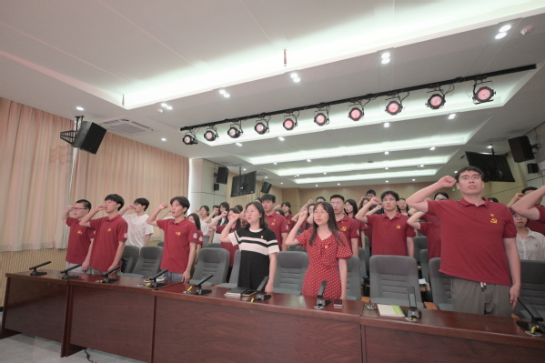 随后,学生第一党支部罗小霞老师带领大家重温了入党誓词。铿锵有力的誓言,是为党的事业奋斗终身的决心。