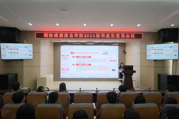 为全面推进党纪学习教育走深走实,进一步增强党员纪律意识,切实提高毕业生党员党性修养,强化毕业生党员离校教育,6月20日下午,测绘遥感信息学院在白云校区博学楼2区5楼测绘报告厅召开2024届毕业生党员会议,会议由专职组织员、学生第二党支部书记冯臻佳主持。
