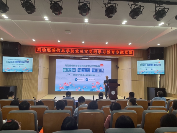 为全面推进党纪学习教育走深走实,进一步增强党员纪律意识,6月28日下午,测绘遥感信息学院党总支书记速云中在白云校区博学楼2区5楼测绘报告厅为学院全体教师党员讲授专题党课。