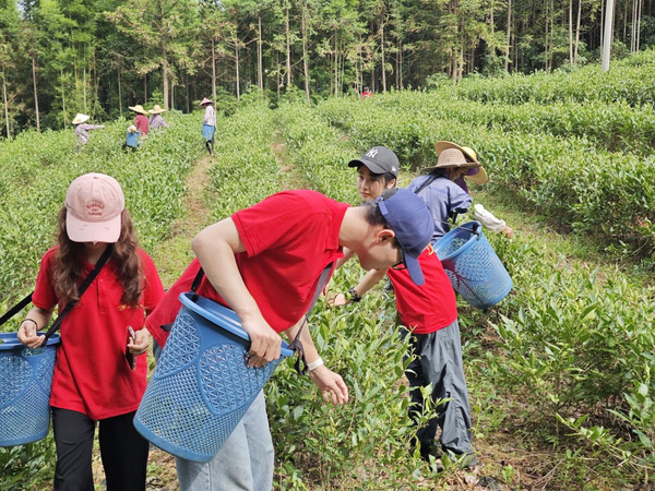 茶叶,这片土地的瑰宝,成为队员们学习与探索的重点。在古洞村村委张秉铸的引领下,团队师生走进茶苗培育地,目睹了茶苗的生长环境,每一片嫩绿的叶子都蕴含着生命的奇迹和农民的辛勤汗水。队员们亲自走进茶园,亲手采摘那鲜嫩的茶叶,指尖触碰着叶片的瞬间,仿佛与大自然进行了一场亲密的对话。走进潘嘉圆茶厂,传统工艺与现代技术的精妙融合让突击队队员大开眼界。古老的手工技艺传承千年,现代的科技设备提升效率,两者相得益彰,共同铸就了地派镇茶叶的卓越品质。