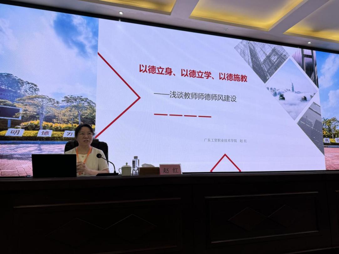 开班仪式结束后,赵红副校长以“以德立身、以德立学、以德施教”为主题,为学员讲授了本次培训班的“第一堂课”。她从师德师风的定义、现状、举措和先进事迹四个方面,论述了数字时代背景下职业院校教师师德师风建设的重要性、加强师德师风建设的路径和方法,为新任教师加强自身品德修养、把握立德树人根本目标指明了方向。