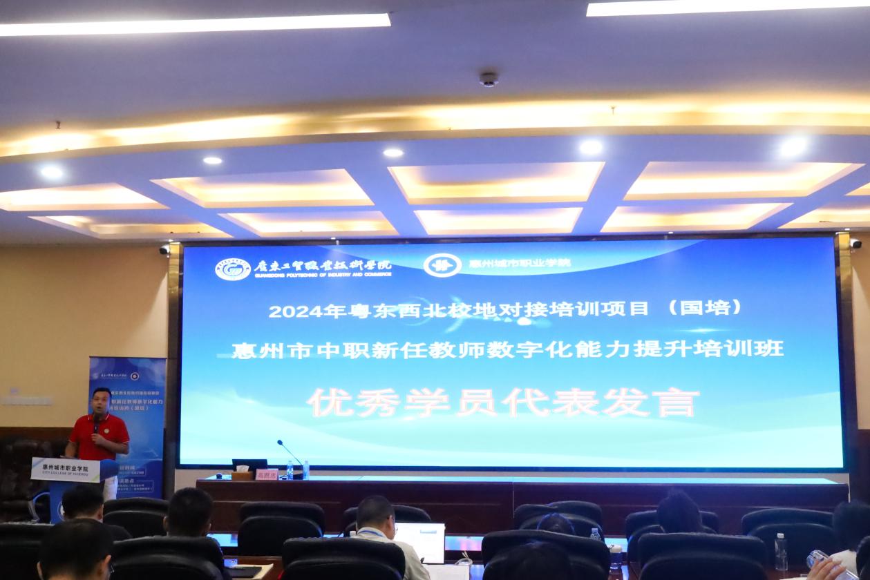 随后,培训班举行优秀学员授奖仪式,高照忠副院长为18位表现突出的优秀学员颁发了荣誉证书。最后,来自惠州工程职业学院的张书光老师作为优秀学员代表发言,他表示自己通过此次培训大有收获,提升了运用数字化技术进行教育教学改革的信心和能力,同时他也代表全体学员表达了对培训单位、授课专家、班主任及工作人员的感谢和祝福之情。