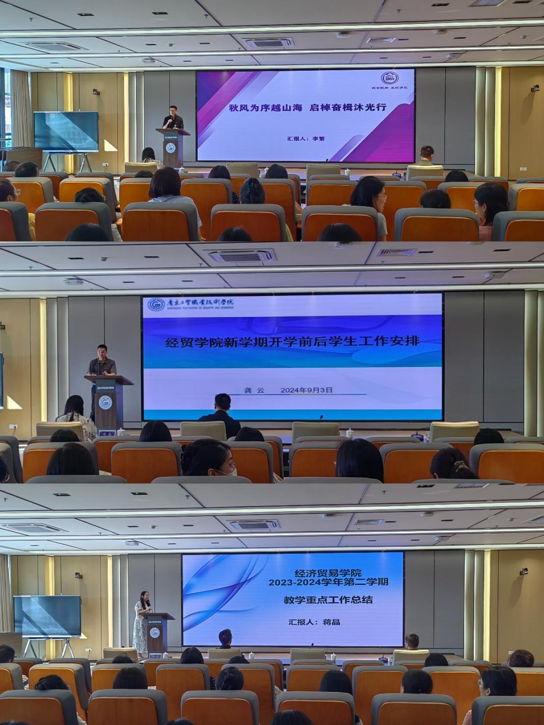 为传达学习贯彻中国共产党第二十届中央委员会第三次全体会议精神,围绕高质量发展,在总结上学期工作经验成效和不足的基础上,进一步明晰新学期规划,开新局、谋新篇,确保新学期各项工作有序开展,9月3日下午,经济贸易学院2024-2025学年第一学期全体教职工大会在白云校区图书信息楼629会议室召开,学校党委委员、副校长唐毓秋及经贸学院全体教职工出席会议。会议由经贸学院党总支书记李繁主持。