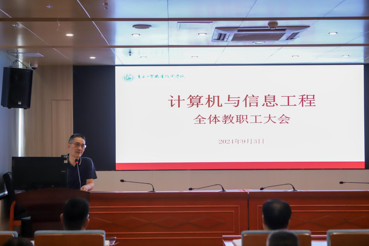 为深入贯彻落实党的二十届三中全会精神,引导学院全体教职工更快更好的融入新学期教育教学工作,9月3日,计算机与信息工程学院在东区报告厅召开2024年秋季全体教职工大会。本次会议由计算机学院学工办主任代启兵主持。