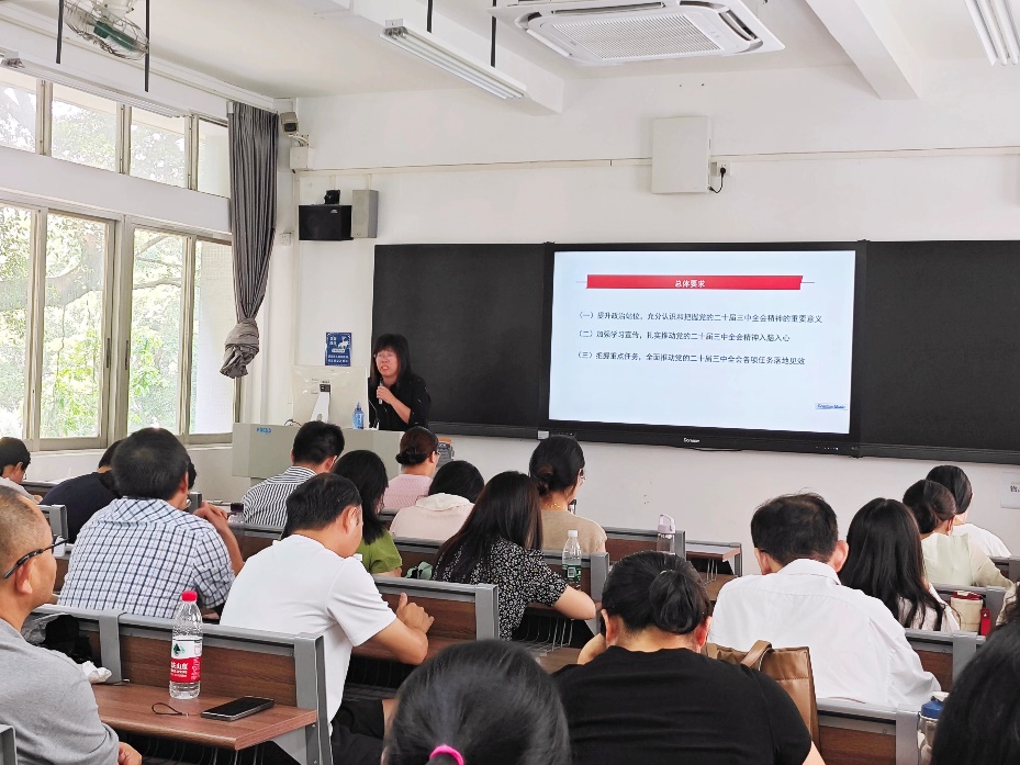 宁晓菊首先传达了学校党委关于认真组织开展校内党的二十届三中全会精神宣讲行动的总体要求和安排部署以及新学期中层干部围绕深入学习贯彻党的二十届三中全会精神思考谋划下一阶段发展战略和改革举措的会议精神。