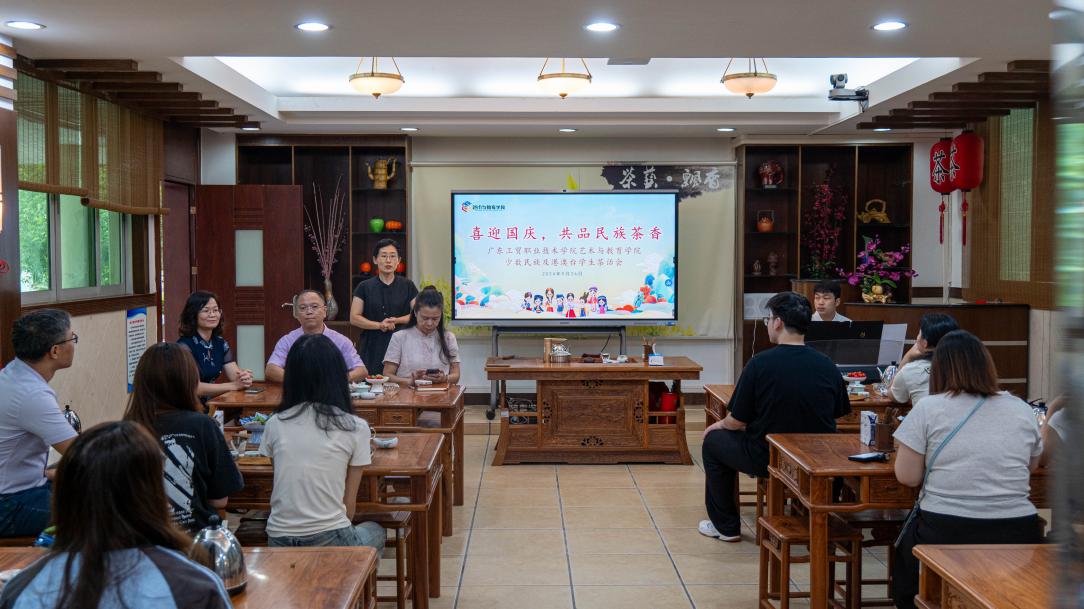 为进一步铸牢中华民族共同体意识,增进各民族学生之间的交流与交融,营造校园“中华民族一家亲”的浓厚氛围,根据学校下发《2024年“民族团结进步”宣传教育月活动实施方案》要求,9月26日下午艺术与教育学院在茶艺室举办“喜迎国庆 共品民族茶香”少数民族及港澳台学生茶话会活动。艺术与教育学院临时负责人张幼晖、院党总支副书记叶宜同、教师党支部书记区翠梅、学工办主任谭武和20余名少数民族及港澳台学生代表参加了茶话会,茶话会由辅导员闫艳主持。
