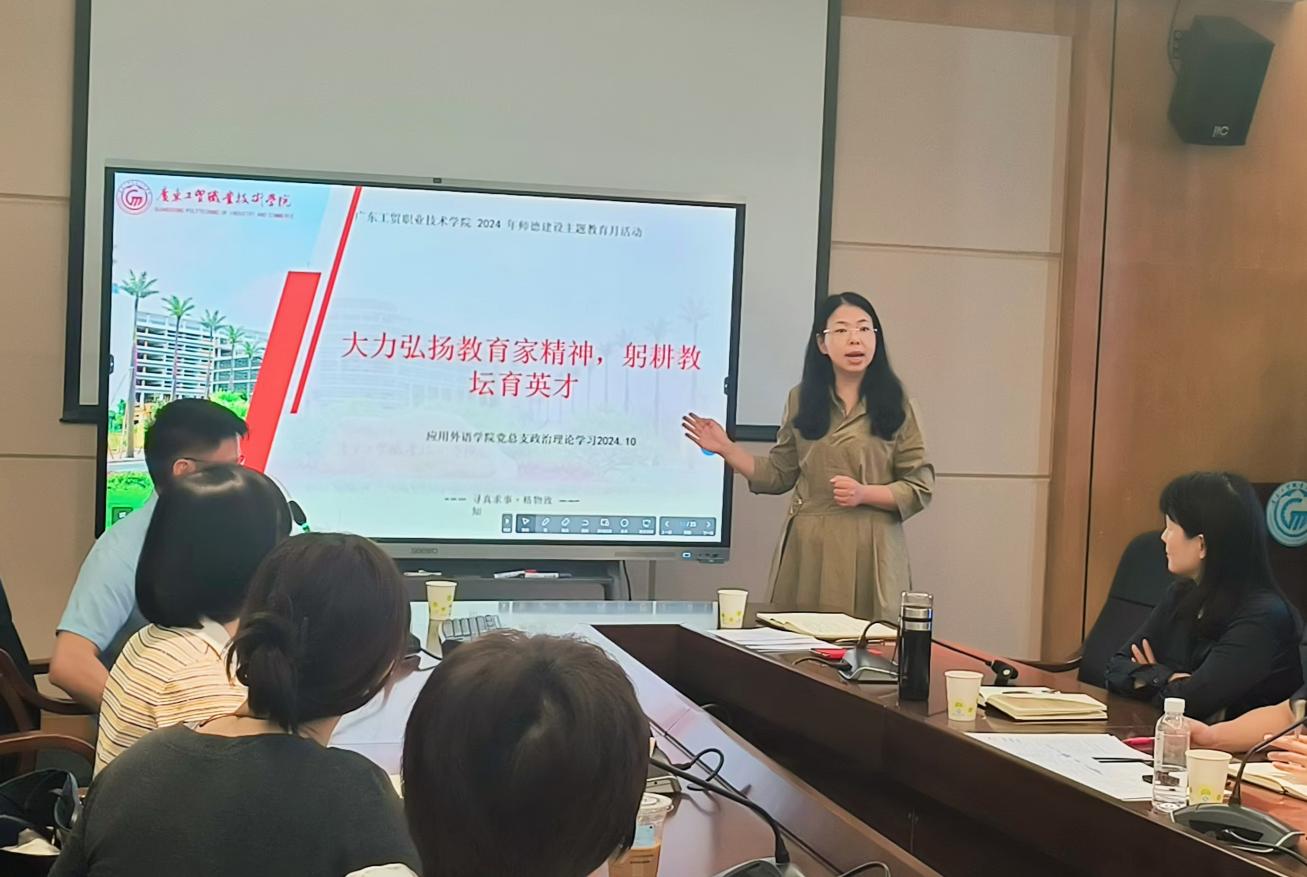 为进一步弘扬教育家精神,加强师德师风建设,进一步激励学院教师不忘立德树人初心、担当育人育才使命,营造尊师重教良好风尚,形成推动教育高质量发展的强大合力,2024年10月12日,应用外语学院党总支在明德楼1-201召开政治理论学习会,学院党政班子成员、师生党支部书记、系主任、专业带头人和全体辅导员等人参加了会议。会议由学院党总支临时负责人罗春科主持。