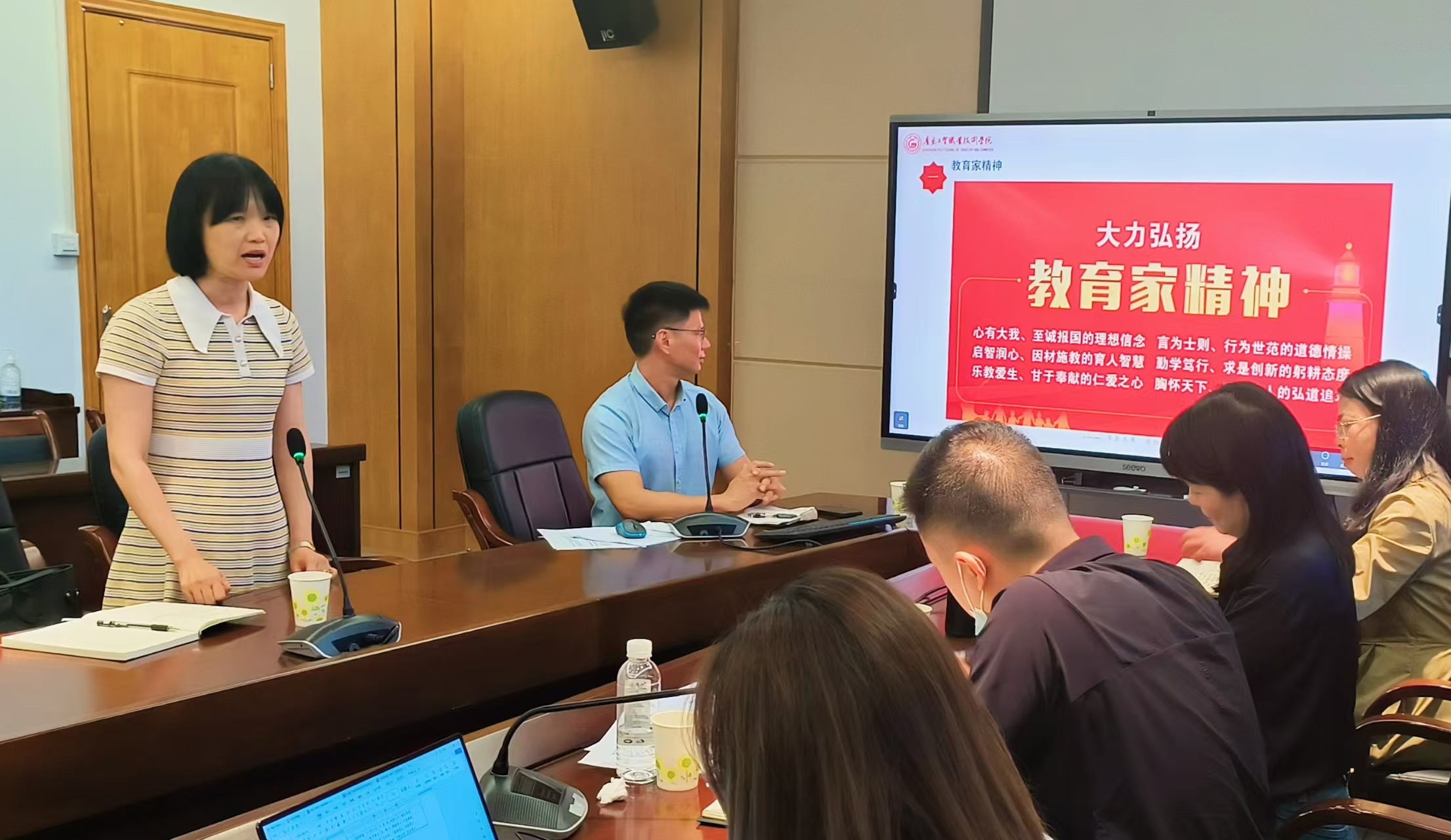 学院院长彭枚芳倡议我院全体教师要弘扬教育家精神,以更加饱满的热情和更加坚定的步伐投身教育事业;不断创新教育理念和教学方法,提高教育教学质量;加强师德师风建设,树立良好的教师形象;积极参与教育改革与创新实践,创新提升综合素养。