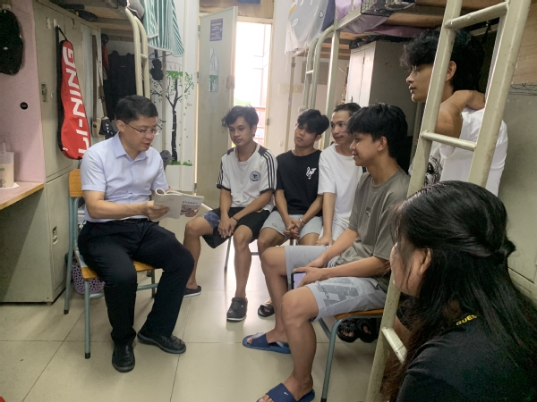 走访期间,徐勇军细心检查了留学生宿舍的卫生和安全状况,确保留学生们居住的环境整洁且安全。他与留学生们进行了深入的交谈,详细询问了他们的学业进展、生活习惯以及在宿舍居住的切实感受。耐心倾听留学生们的心声,并对他们提出的问题给予了细致的回答和实用的建议。