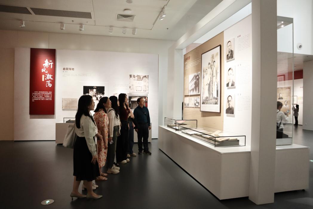 活动的第二站是广东文学馆。驻足馆内,颔首凝望新兴技术、千年文脉在此交相辉映,与鲁迅、康有为、梁启超等人文英杰共赴一场延绵轮转的文化之旅。在数字智能的加持下,饱经岁月洗练的字句诗词焕发出了新的生机,同志们在广东近代文学展厅“铁火新生”中通过沉浸式体悟,切身体会到了文人风骨与革命信仰的深刻内涵,更进一步深化了对于红色文化的强烈自豪感。