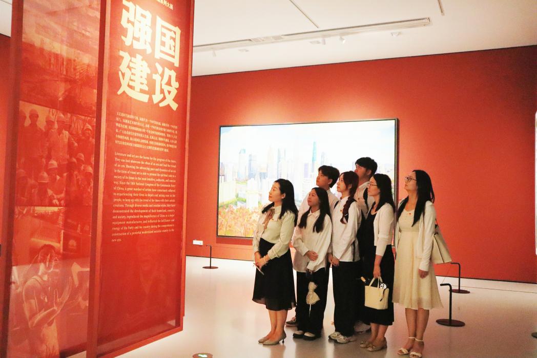 活动的第一站是广东美术馆。借参观“粤韵匠心·艺铸华章”展区之际,党总支书记周清莲同志通过现场党课的方式,向各位党员同志介绍了广东艺术的发展传承与历史积淀,让同志们深刻感受到岭南大地的改革之风包裹着人民对美和创新的追求,号召新时代的青年党员,更应当主动扛起责任,坚定文化自信与文化认同感,争做中华优秀传统文化声情并茂的讲述者、坚定笃行的传承者、继往开来的发扬者。课后,同志们陆续参观了“新时代 • 新跨越“系列大展”,在“强国建设”“美好生活”“绿美山河”等艺术板块中,充分感受新时代社会生活的发展变化和广东改革开放的建设成就。
