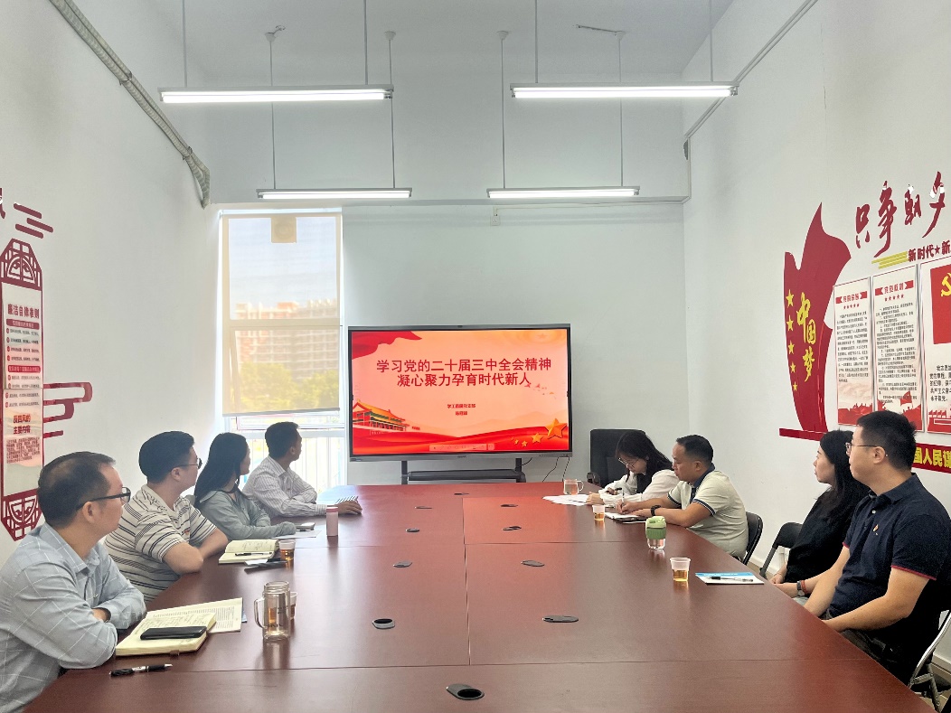 11月7日上午,学工直属党支部书记陈冠锋在学生活动中心101会议室以“学习党的二十届三中全会精神,凝心聚力孕育时代新人”为主题,为支部党员讲授专题党课。