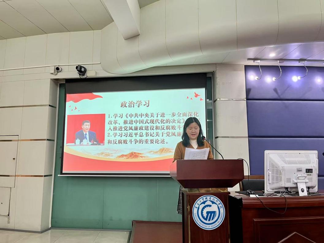 最后,学院全体教职工进行了政治理论学习。学院党总支书记李元带领大家学习了《中共中央关于进一步全面深化改革、推进中国式现代化的决定》中关于深入推进党风廉政建设和反腐败斗争的内容以及习近平总书记关于党风廉政建设和反腐败斗争的重要论述。