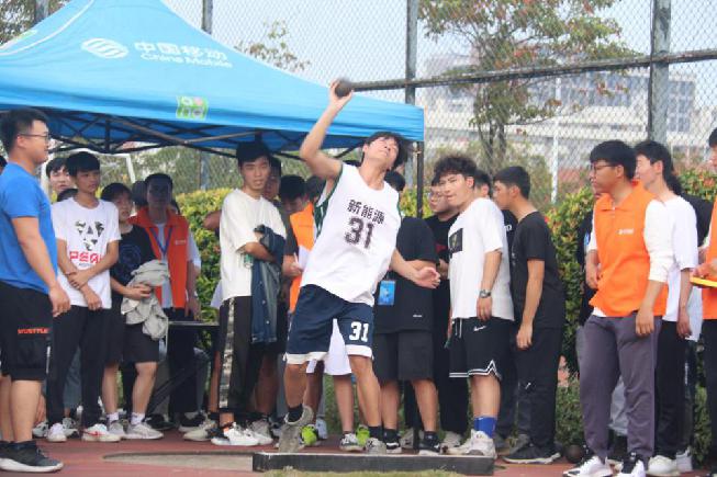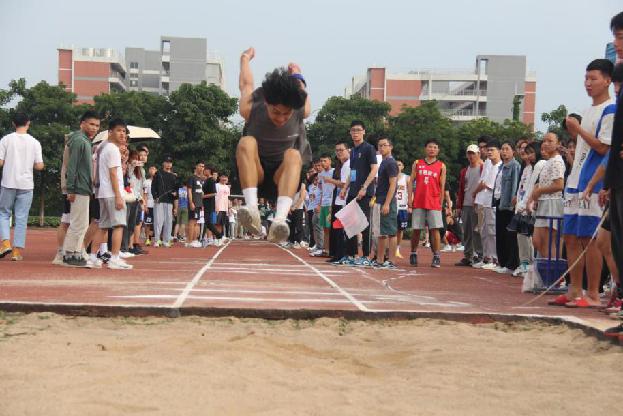 运动员投铅球瞬间 那轻盈的步伐似飞鸟的翅膀,那清脆的声音响彻天际,它粲然升起那跃动的渴望,起跑、加速、超越、冲刺,一步一步延向胜利的曙光。铅球、跳远则是考验运动员的动作流畅性以及爆发力的项目,在这些运动员眼里,若是不给自己设限,则人生中就没有限制你发挥的籓篱。 运动员跳远瞬间 运动场上,运动员们奋力拼搏;运动场外,拉拉队齐心协力,为运动员加油助威。本次运动会,展示本院学生风貌、见证强者拼搏精神。接下来,各参赛项目运动员正在为参加校运动会而开展紧锣密鼓的训练,希望汽车学子在校赛挑战中创造更多的辉煌! (汽车工程学院 文/李圳合、桂晶晶 图/李帝莲 审核:欧敏)