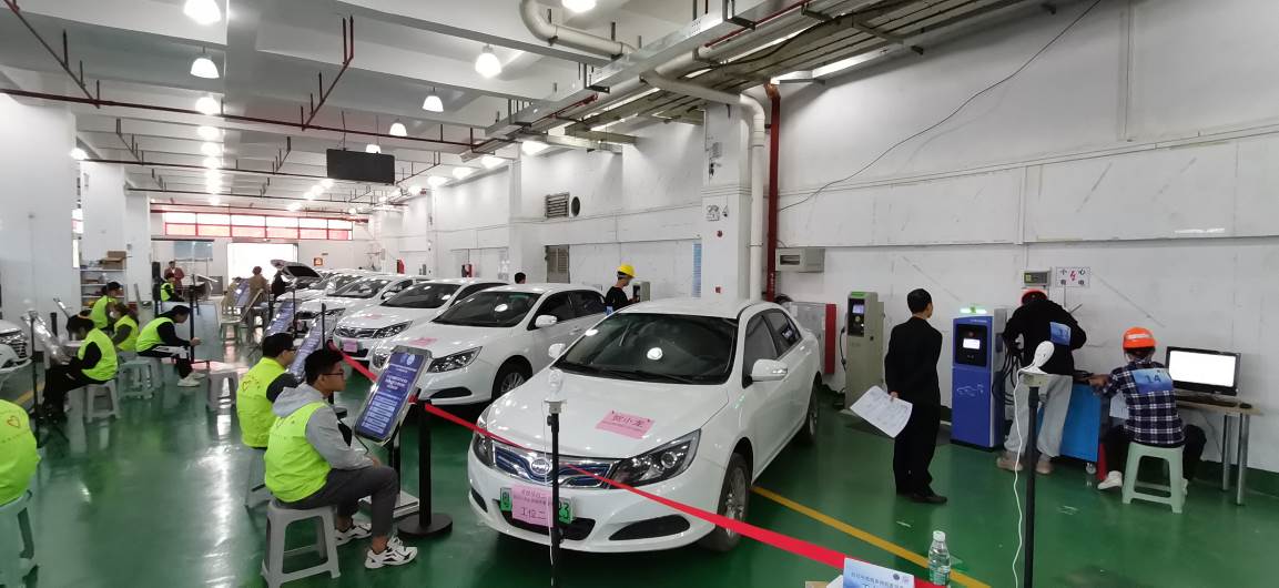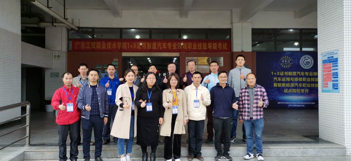 考评员和工作人员合影 为确保考评工作顺利开展,汽车工程学院邀请了广州科技贸易职业技术学院张红伟为督考员,和广东机电职业技术学院邓炯峰等8位“1+X”证书考评员组成考评小组,分6批对96名学生进行职业技能考评。 经过紧锣密鼓的准备,11月28日上午八点,新能源汽车专业“1+X证书”考评拉开了帷幕。考试全过程电子监控,有效备份各类数据,电力、网络等服务保障到位,考试秩序稳定良好。96名考生分两天有条不紊地参与考评,每名学生要在4个工位独立完成4个项目共计120分钟的操作技能考核。考核标准高、难度大。考生沉着应对,取得了良好成绩,整体通过率达到了81.25%。