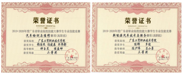 校领导为青年教师代表颁奖 汽车工程学院党总支彭卫东书记、学工办蔡少德主任和获奖青年教师代表吕小勇老师参加了本次会议。吕小勇老师是“潘梦鹞劳模与工匠人才创新工作室”培养的青年教师之一。自2019年5月被省教科文卫工会命名以来,一批批青年教师迅速向工作室靠拢,依托“潘梦鹞劳模与工匠人才创新工作室”平台,踏实工作,勤奋钻研,陆续获得一些喜人成绩。比如陈少伟老师和吕小勇老师指导学生获得新能源汽车技术省级比赛三等奖项,钟玉灵老师指导学生获得汽车检测与维修省级二等奖、钟玉灵老师和吕小勇老师获评现代测试技术工程师职称,率先打通职业教育职称和企业职称贯通工作,为职业教育培养一批“工程师+讲师”双师型教师。 青年教师指导学生参加省技能比赛获奖 目前,“潘梦鹞劳模与工匠人才创新工作室”正重点开展智能驾驶和智能语音方面的技术攻关,努力培养更多青年教师,争取为专业建设和教师信息化教学提供新的技术支持。 (汽车工程学院 图/蔡少德 陈少伟 钟玉灵 文/吕小勇 审核/潘梦鹞) |