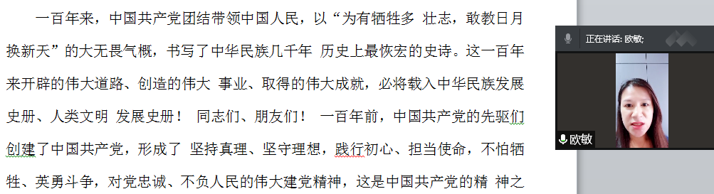 欧敏分享学习《习近平同志在庆祝中国共产党成立100周年大会上的重要讲话(2)》