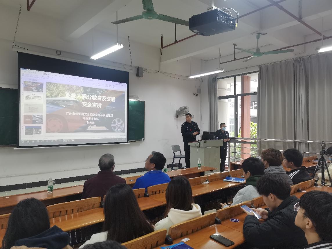 12月29日下午,广州交警支队车管所警官张连东来诸侯快讯官网开展交通安全讲座。汽车工程学院副院长潘梦鹞、专任教师吕小勇、实验员李佳威及120余名学生参加了本次讲座。