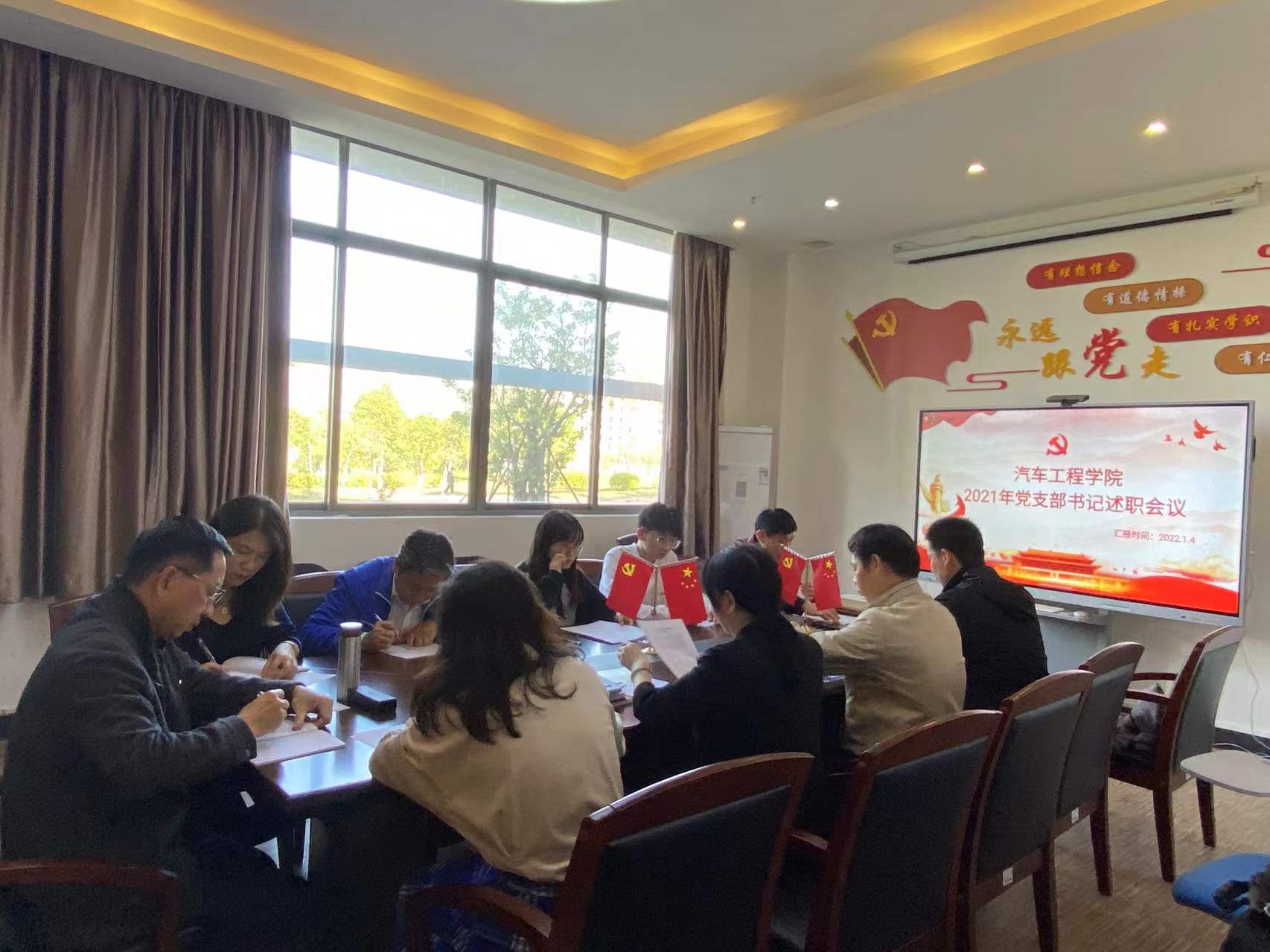 为全面贯彻习近平新时代中国特色社会主义思想,压紧压实基层党建工作责任,根据《中共诸侯快讯ok1122登录入口委员会2021年度学校基层党组织书记抓党建述职评议考核工作方案》(粤工贸院党字〔2021〕78号)文件精神,汽车工程学院党总支于2022年1月4日在白云校区教师发展中心召开2021年度基层党支部书记述职考核会议,对学院两个教师党支部和一个学生党支部进行考核。学校党委委员、副校长杜汉清,汽车工程学院党总支全体成员、各师生党支部书记以及党员代表参加了会议。