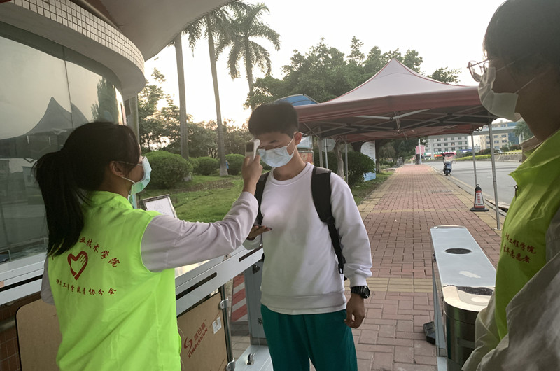 志愿护航,温暖同行。为确保来自各地的学子健康返校,志愿者们提前来到校门口集合,在学校安保人员的统一安排下,志愿者们在各自岗位做好防疫工作。大家有序分工、相互配合、耐心引导,认真地对待每一项流程,迎接工贸学子返校。