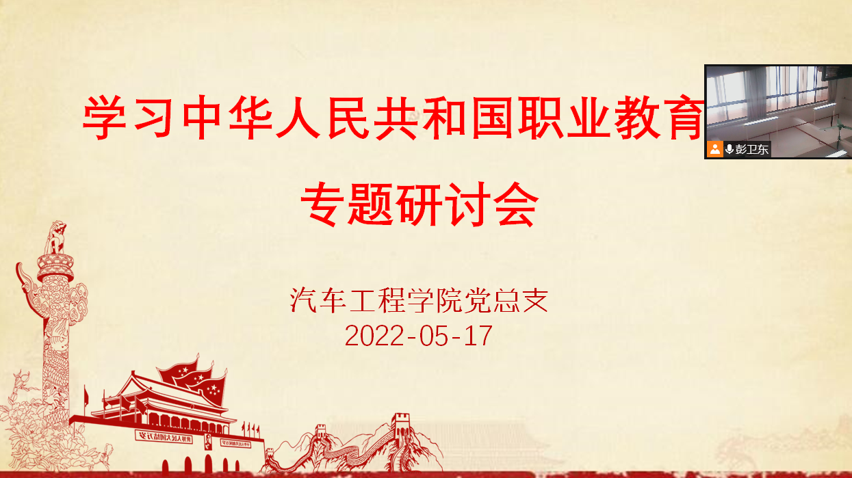 5月17日下午,汽车工程学院召开了学习《中华人民共和国职业教育法》专题研讨会。会议由汽车工程学院党总支书记彭卫东主持,汽车工程学院全体党员参加了会议。