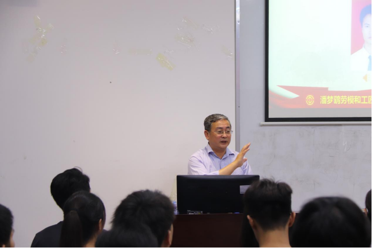 紧接着,潘梦鹞结合自身专业知识和经验优势,从激发创新活力的角度对学院人才培养目标和人才培养方式进行重点讲解。他指出学院接下来将紧密围绕“立德树人”根本任务,将劳模精神、劳动精神、工匠精神纳入课程体系,不断提高人才培养质量,进一步激发学生创新活力,为国家培养更多的高素质技术技能人才。