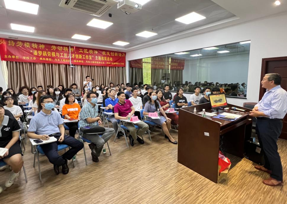 为深入贯彻落实习近平总书记重要讲话精神,大力弘扬劳模精神、劳动精神、工匠精神,引导青年学子树立以爱国主义为核心的民族精神和以改革创新为核心的时代精神。5月25日下午,由学校工会主办、汽车工程学院承办、汽车工程学院学工办、汽车工程学院职工小家协办的“弘扬劳模精神 劳动精神 工匠精神 激发创新活力—潘梦鹞劳模与工匠人才创新工作室”主题讲座在明德楼1区-215教室开展。学校工会常务副主席赖明瑛、副主席李伟民、应用外语学院副院长邓国栋、汽车工程学院党总支副书记欧敏、新能源汽车技术系主任王锋、专任教师甘俊旗、辅导员郭静文、预备党员以及发展对象等参与讲座。