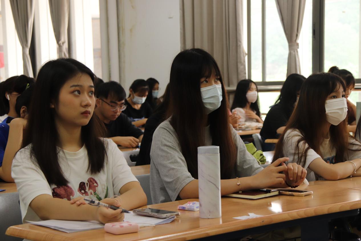 汽车工程学院副院长潘梦鹞讲课现场 最后,潘梦鹞对即将进入顶岗实习阶段的汽服专业学生提出几点期望:第一、好好学习。无论是学生时代还是进入职场,都要好好学习,只有不断学习,才能进步,才能不会被社会淘汰;第二、进取心。没有进取心就没有学习的动力;第三、适应环境。要懂得从学生到工作者的角色转变,学会融入环境,学会改变自己、突破自己;第四、善于规划。一是要明确自己的人生目标,二是要明白自己想成为怎样的人,成为这样的人需要什么条件,在人生的规划中要正视自我,设定目标合理,不能好高骛远,要脚踏实地;第五、练就过硬技能。决定自己未来发展的上限在于过硬的本领。第六、要德技兼修,知行合一,将遵守职业道德内化于心,外化于行。