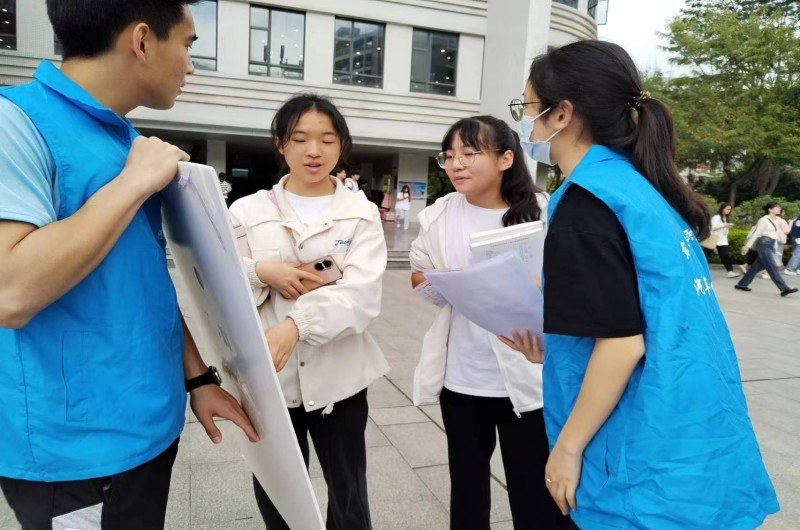 工作人员宣传现场 为提高电脑义务维修服务质量,22级青协成员提前一天到达现场进行布置,做好活动一切准备。活动开展期间,工作人员到达子矜广场进行宣传,积极为同学们讲解活动细则,各学子通过宣传纷纷来到摊位前,希望能解决电脑问题。计算机协会成员各司其职,积极为同学们检测电脑问题根源,帮助大家解决电脑故障,并普及电脑日常维护电脑的相关知识,22级青协成员有序维持现场秩序,使此次活动能够成功举办。