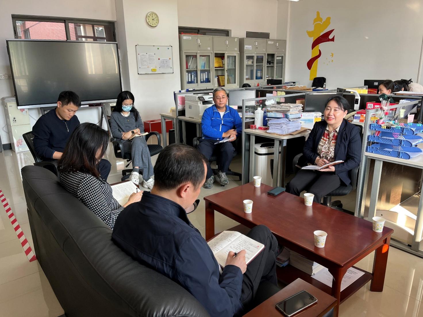 2023年11月23日,学校党委委员、纪委书记陈斌到汽车工程学院调研指导工作,汽车工程学院党总支书记彭卫东、院长王艳芬、副书记欧敏、副院长潘梦鹞陪同调研,并汇报了学院党总支的政治核心作用、专业建设和教学科研等情况。