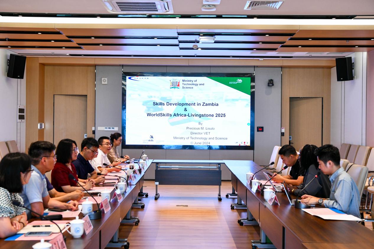 赞比亚科技部技能司司长伊苏洛·普瑞舍斯·穆什巴感谢学校热情招待,她详细介绍了赞比亚现有资源与发展前景,希望借此机会,通过交流增加彼此了解,探索职业院校的合作机会。
