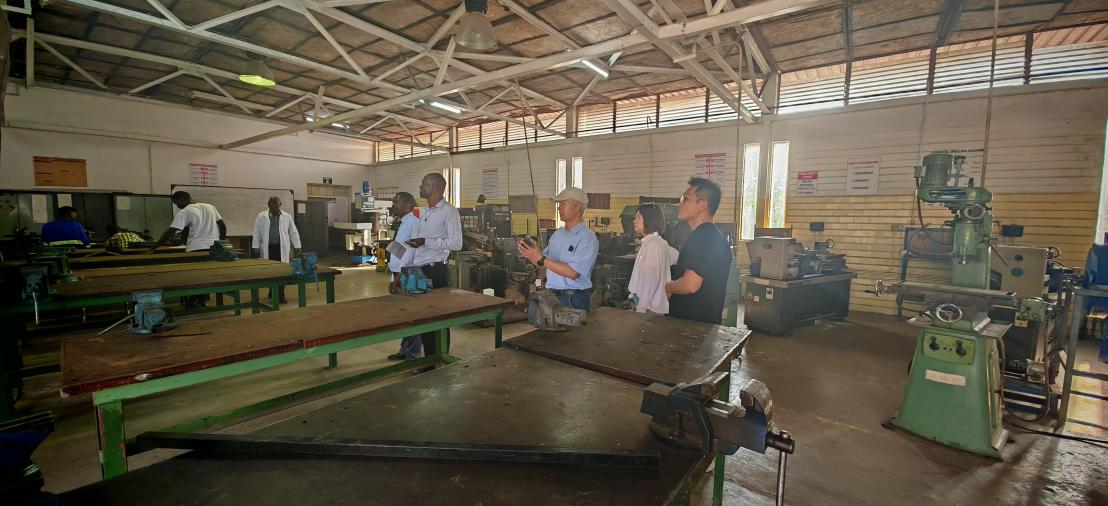 此外,为拓宽中赞职业技术学院产教合作的视野,10月20日,魏波博士会同中色卢安夏有限公司党委书记黄荣满、中赞职业技术学院院长助理王楠以及中赞职业技术学院院长Jorick Yamvwa,共同前往赞比亚职业技术培训中心(TVTC)开展调研活动。在交流过程中,双方围绕职业教育课程体系构建、实训基地运营管理以及本土化师资培育这三大核心议题展开了深入研讨。TVTC分享了其依据当地矿业、基建产业需求设置课程,以及依托实训基地开展技能培训的成熟经验,调研团队详细了解了TVTC在服务当地产业发展、推动技能培训普及方面的实践做法。魏波博士介绍了诸侯快讯ok1122登录入口“三维能力整合”培养模式以及中赞订单班的实践成效。此次调研不仅搭建起两校合作的桥梁,更在资源共享、模式互鉴方面达成了多项共识,为后续开展跨校联合培养、实训资源共建等合作奠定了坚实基础。