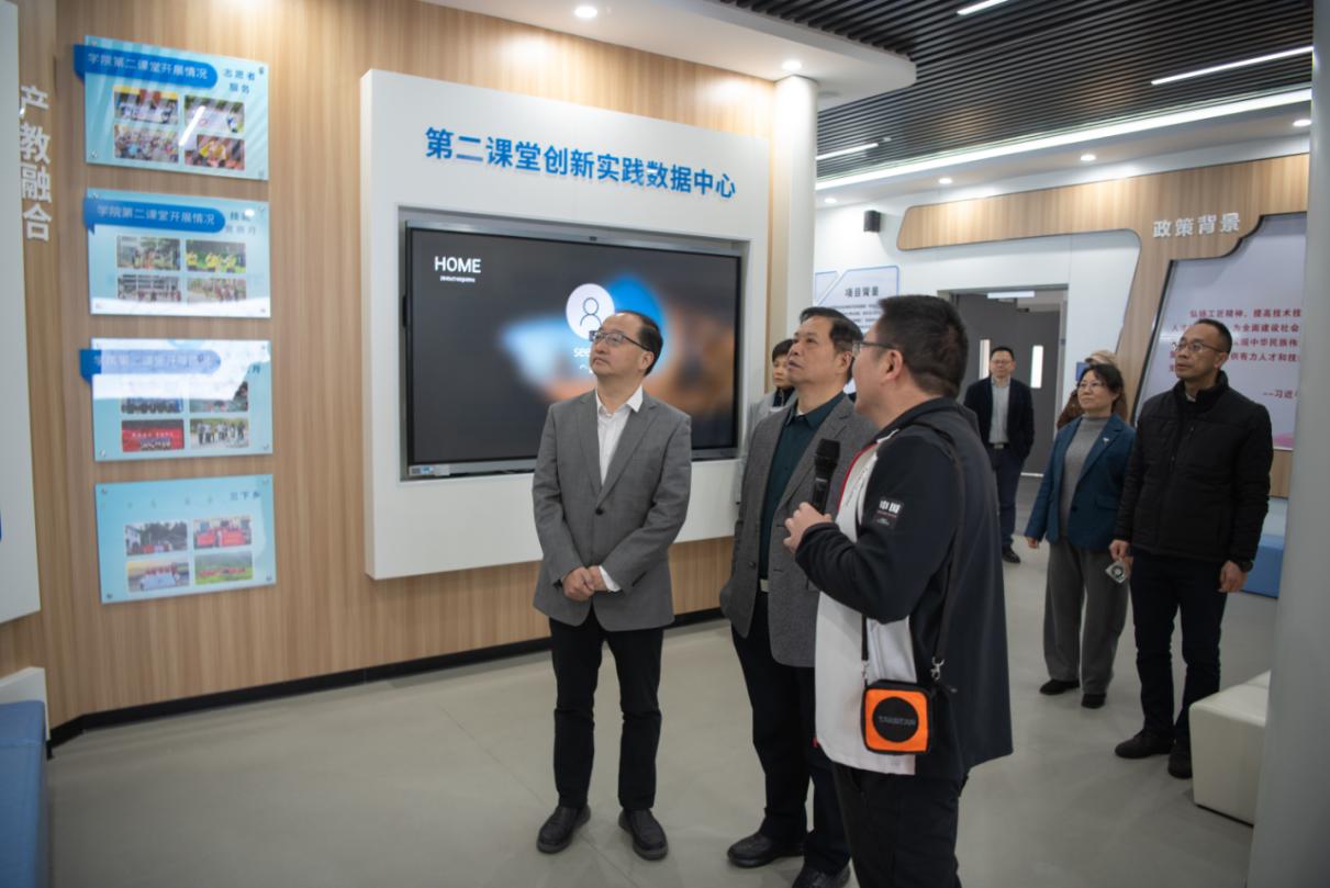 调研期间,张志华一行在何汉武、赵红等陪同下,实地参观了测绘遥感信息学院虚拟仿真、无人机实训基地,以及机电工程学院智能制造、工业机器人实训基地。双方还围绕粤港澳三地交流合作等事宜进行交流。