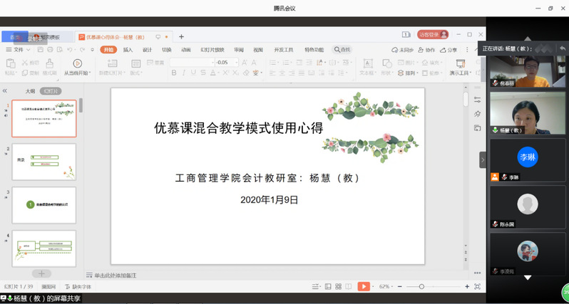 2020年9月16日晚上8点,工商管理学院通过腾讯会议平台召开了本学期外聘及新入职教师教学能力提升培训会议。本次会议由工商管理学院副院长倪春丽主持,院长邹德军、杨慧等5位骨干教师及徐兰君等26位外聘及新入职老师参会。