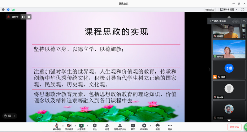 在数字化课程建设方面,杨慧、李凌苑老师分享了线上教学的相关经验。杨慧强调线上教学要充分考虑学生课前、课中、课后三个阶段的不同特点,以学生为主体,通过小组讨论、翻转课堂等方式全面提高学生的学习兴趣和参与程度。李凌苑强调数字化课程开发要充分利用网络资源,结合教师自身教育教学经验,遵循教学性、科学性、开放性、通用性、层次性、经济性等六大原则,更好地完成课程的教学目标。