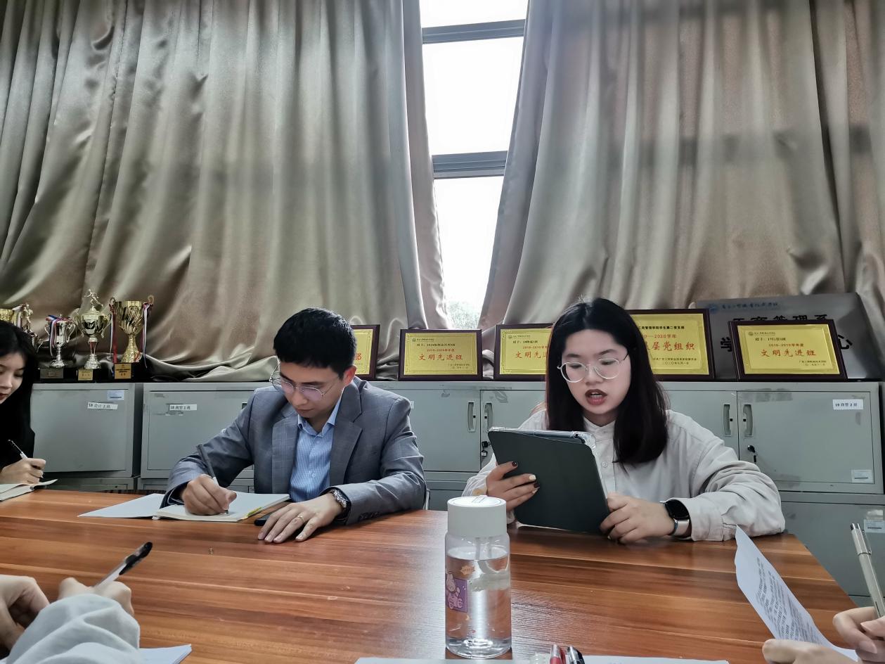 谢简首先对院学生会近期各项工作进行总结,并对本届学生会克服了疫情等困难,在学院党总支的领导和院团委的指导下顺利完成了各项工作予以了肯定。接下来,三名院会轮值主席及七位部门负责人依次述职,从继续推进学生会改革、配合学院重点工作开展、服务广大同学等各方面做出的贡献及存在的不足进行了梳理和总结。