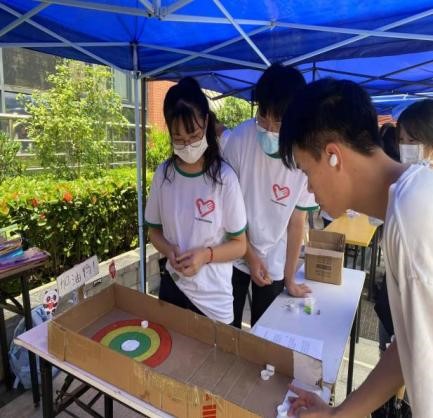 活动开展当天烈日炎炎,负责人们提前到子衿广场布置现场。本次活动设有“赛道比赛”、“冰壶运动”、“冰球运动”、“掷球之垃圾分类”四个游戏,同学们按要求有序加入到游戏的行列中来,在参与游戏中,同学们不仅感受到了放松和欢乐,还学习到了有关冬奥和环保的知识。在负责人们组织者的详细策划和精准指引下,冬奥环保活动有序进行着,很好地宣传了活动开展的意义。