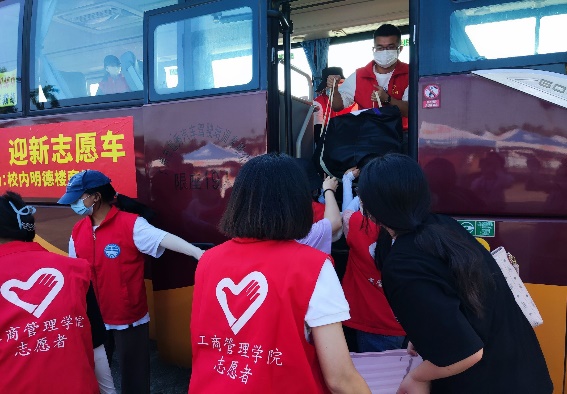 活动过程中,志愿者们统一身穿红色马甲,分工明确,相互配合,各项工作开展得紧锣密鼓、井井有条。志愿者们带着热情的微笑迎接每一位新同学,协助新生搬运行李到达校巴处,带领他们去到宿舍放行李,引导他们前往三栋架空层进行注册及报到。志愿者们的服务热情周到,言谈举止文明,给新生展现了互助友爱的精神风貌。