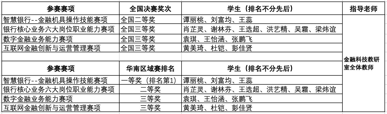 工商管理学院高度重视该赛项的备赛工作,在组织选拔、集中训练、物资保障等方面给予大力支持,达到了促进提升金融科技创新应用,加快金融专业转型升级,培养创新型金融科技人才的目的。经过初赛选拔后,工商管理学院2020、2021、2022级各相关专业近40名学生共10支队伍参加了华南区域赛,其中5支队伍进军全国决赛。