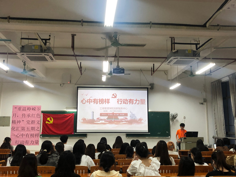 为深入学习贯彻习近平新时代中国特色社会主义思想和党的二十大精神,充分发挥先进典型示范引领作用,工商管理学院党群服务中心于5月8日晚在明德楼2-102开展了“心中有榜样,行动有力量”党群“文化汇”活动,集中观看《榜样7》。