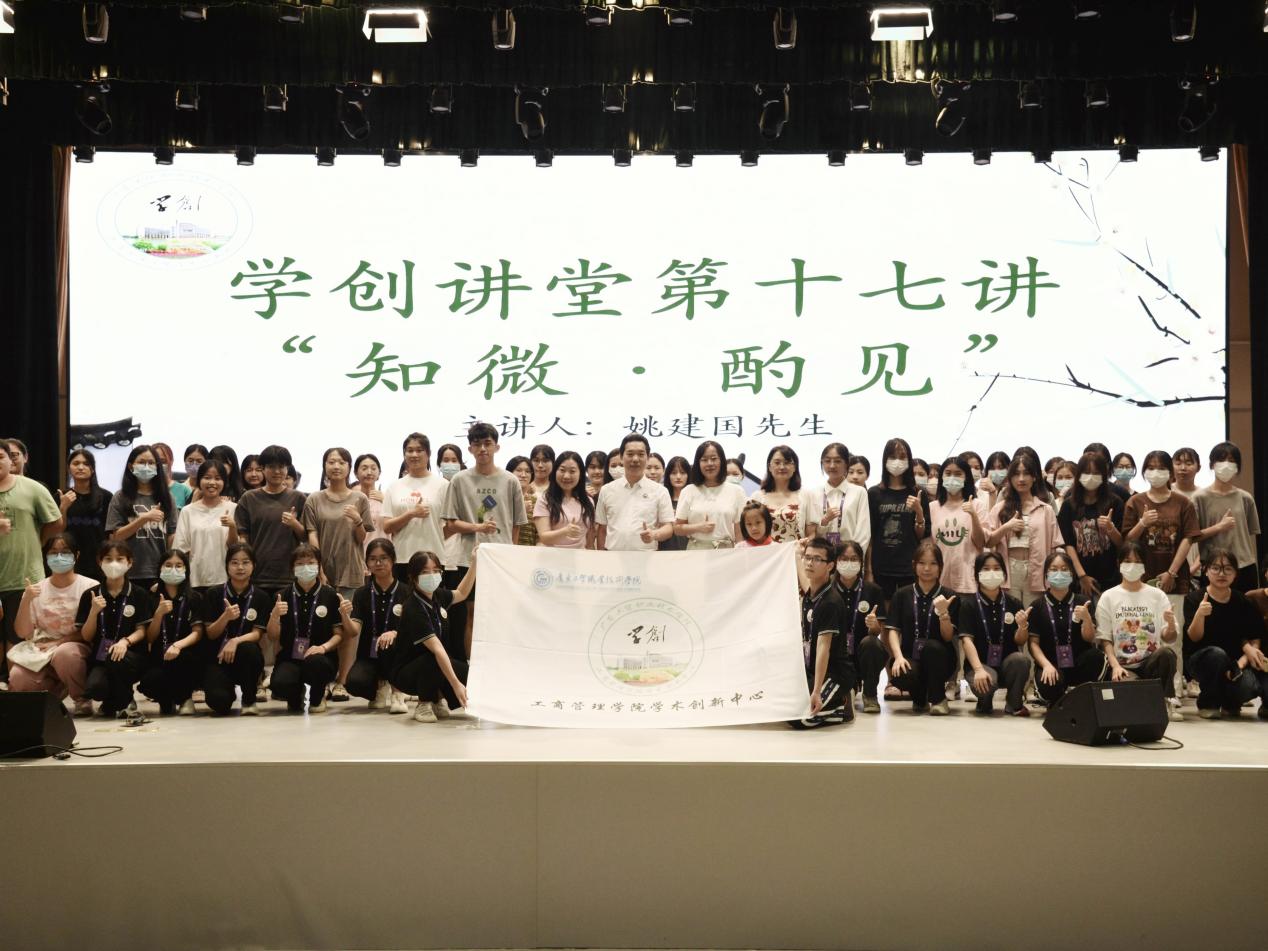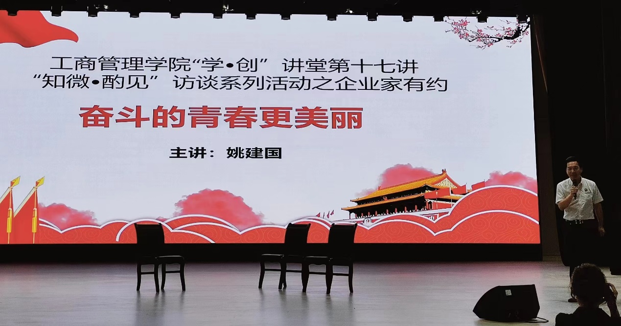 为深入学习贯彻习近平新时代中国特色社会主义思想和党的二十大精神,激励学生发扬担当实干、奋发有为、干事创业的奋斗精神,引导学生树立正确的奋斗观、牢记新时代青年的担当和使命,做有理想、敢担当、能吃苦、肯奋斗的新时代好青年。6月1日,工商管理学院在白云校区学生活动中心举办“学创”讲堂第十七讲“知微·酌见”访谈系列活动之企业家有约。本次活动特邀广州巴国文化发展有限公司董事长姚建国作为主讲人。工商管理学院书记周清莲、辅导员周敏、韩天瑶、郭新娟以及学院150多名学生参加了本次活动。