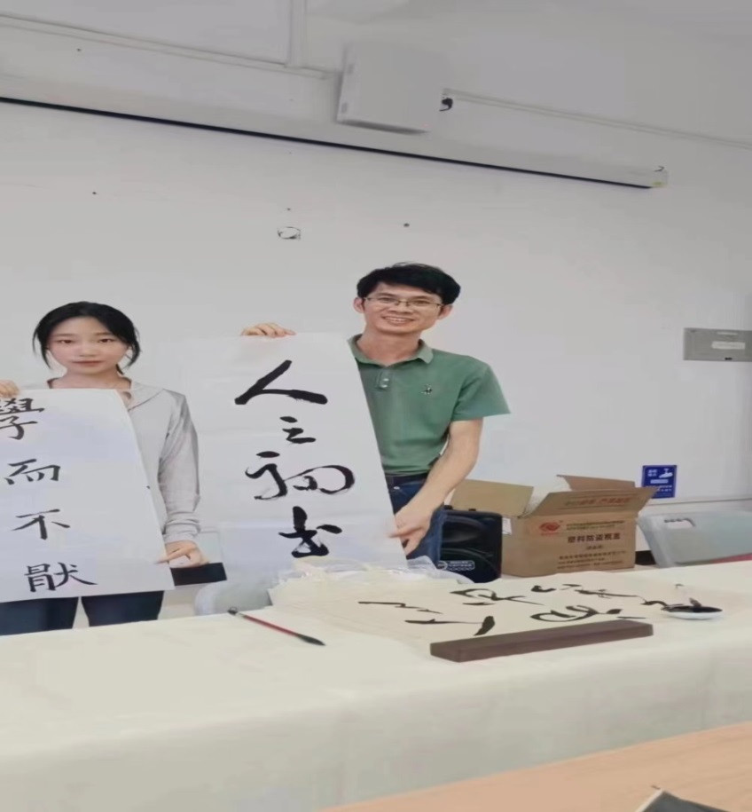 读书会还特意穿插了“诗词抢答”、“成语接龙”、“抽盲盒”等环节,在主持人的引导下,同学们热情高涨、积极参加,现场气氛异常活跃。活动结束后,高国昌与刘盈等即兴泼墨挥毫,博得在场同学的啧啧称道。