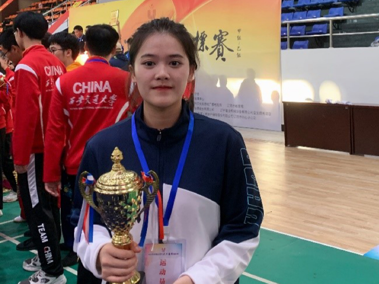 在5月份举行的中国大学生武术套路锦标赛中,工商管理学院22工商企业管理(2)班的学生蔡昀芯荣获女子乙组八卦掌、形意拳、劈挂拳3枚金牌,成为名副其实的“三冠王”,同班的徐钰荣获得女子乙组八法五步银牌1枚。