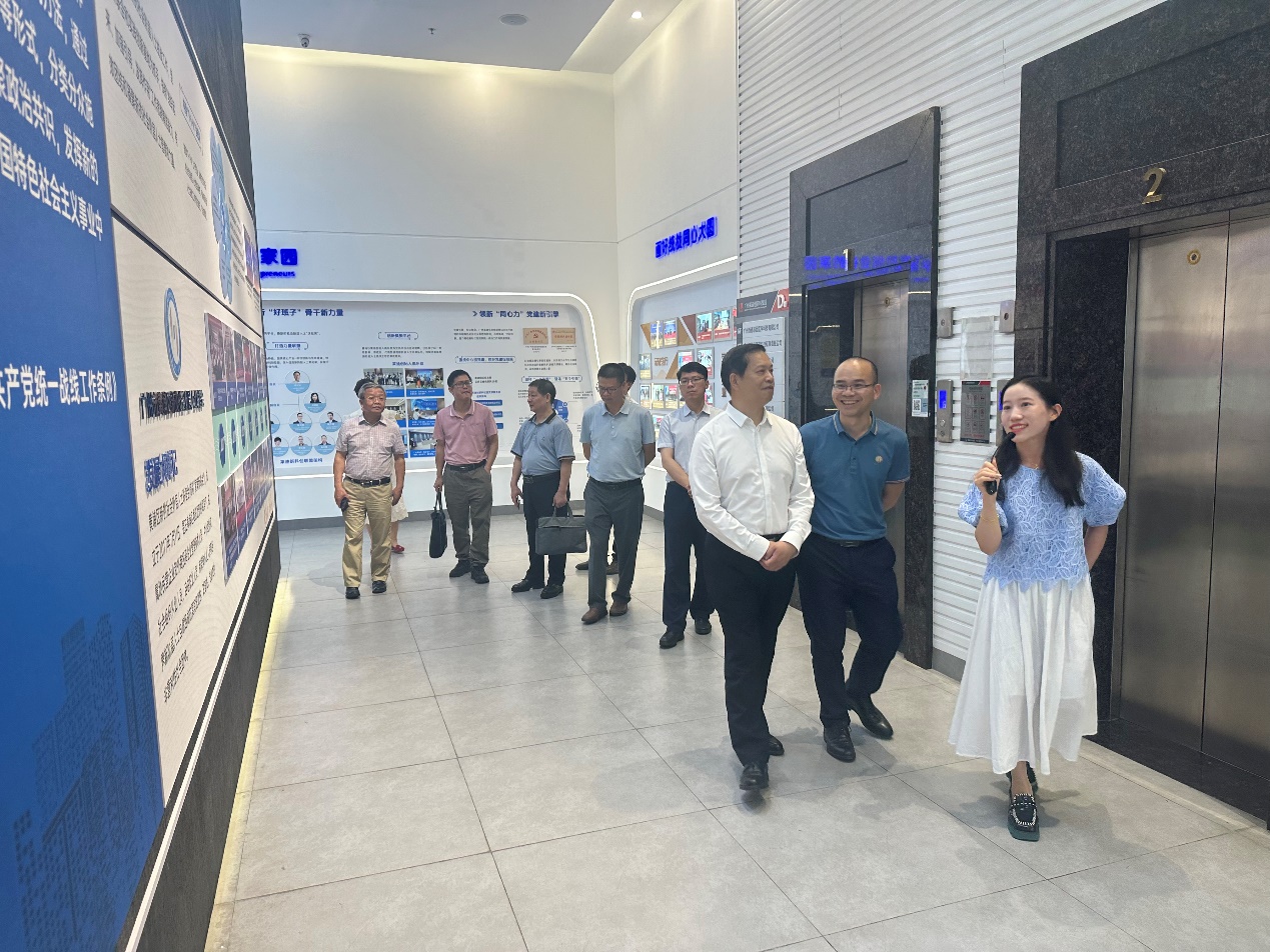 在广州莱迪智汇谷产业园区运营管理有限公司总经理蒋志刚带领下,何汉武一行观看了产业园的宣传片,并参观了园区文化馆、图书馆、艺术展馆、广州莱迪生物医药研究院等,实地体验了园区企业文化气息。