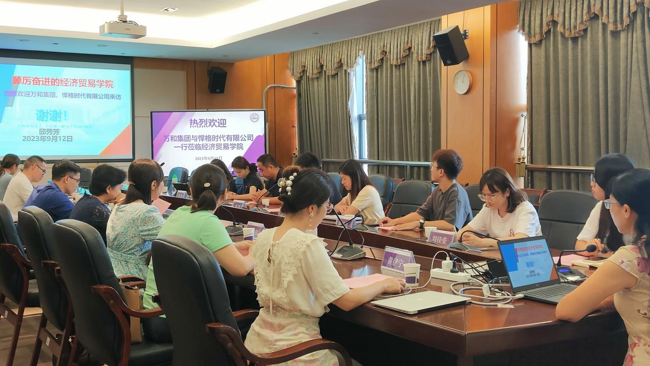 为进一步加强与企业联动,拓展就业资源,共同搭建学校、企业的合作桥梁,强化校企合作,9月12日,万和集团客服部总监蔡聪、广东悍格时代电商有限公司(以下简称“悍格时代”)客服总监王源彬及其团队一行9人来我院进行考察交流,会议在明德楼1-201举行。经贸学院党总支书记李繁、院长邱秀芳以及市场营销专业骨干教师彭娟、黄华乾、余媛、邓颖仪、冯玥怡、黄伊宁、梁艳出席会议。会议由邱秀芳院长主持。