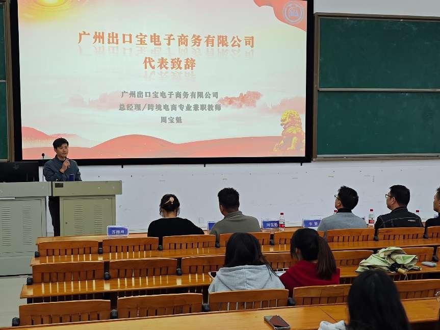 周宝魁则详细介绍了广州出口宝电子商务有限公司,并分别展示了部分项目内容,以及表达了对于当下国际市场的见解。让学生们眼前一亮,纷纷表现出了极大的兴趣。